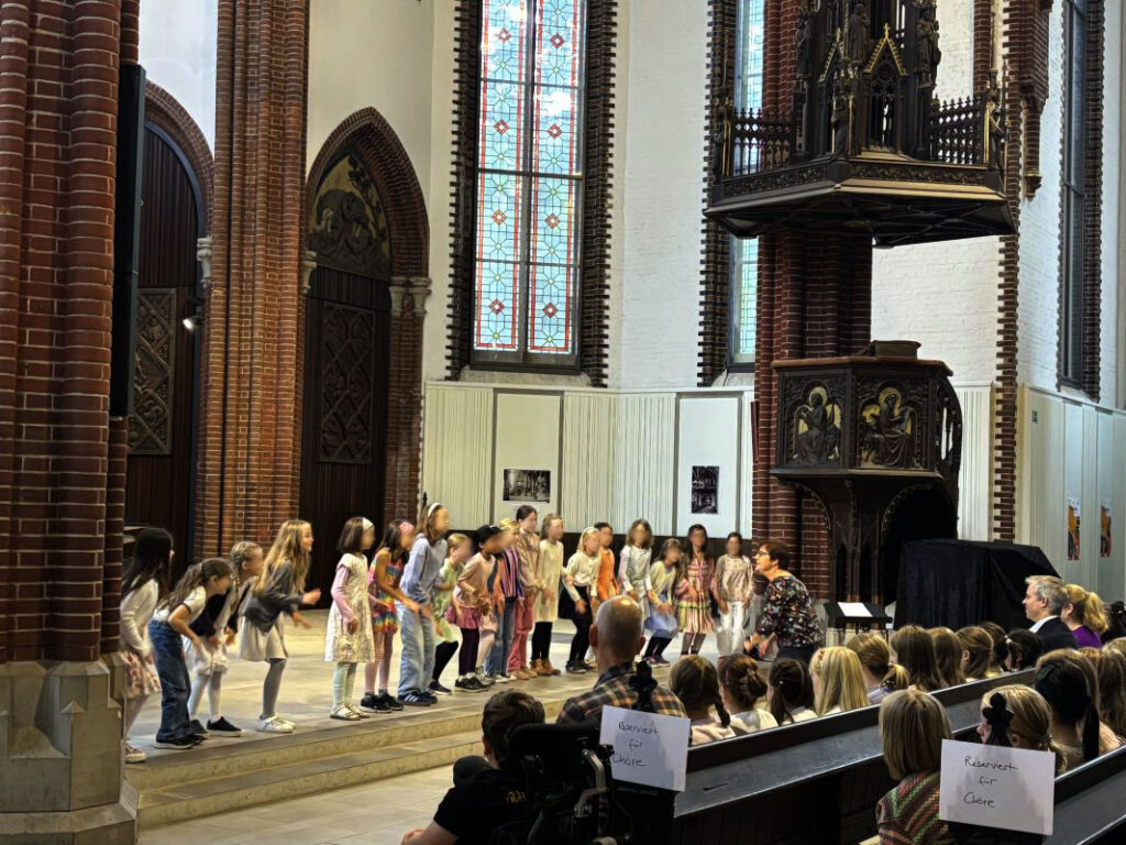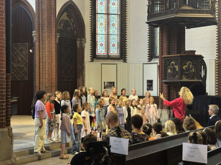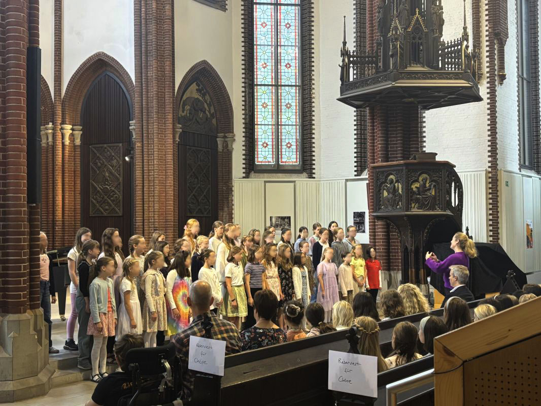 Der Nachwuchschor, mit Mädchen in der letzten Vorstufe zum Konzertchor, berührte das Publikum dann mit Dat du min Leevsten büst und Johannes Brahms‘ Ein kleiner, hübscher Vogel. Mit dem „hübschen Vogel“ dazu zu inspirieren, auch mal etwas Gewagtes zu tun, war hier der Hintergedanke von Chorleiterin Julia Wolf. Alle Vorgruppen vereint stimmten abschließend in einen Sommerkanon ein, den das Publikum fröhlich mitsang. Eine lebendige und warme Atmosphäre beim Sommersingen des Mädchenchors, mit Begeisterung sowohl auf der Bühne, als auch bei den Zuhörenden – besonders in Momenten stiller Rührung bei besinnlichen Liedern und Freude bei mitreißenden Klängen.