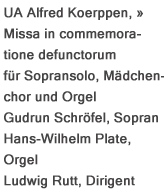 | 1982 | Schallplattenaufnahme | Hannover | “Nun stehen die Rosen in Blüte” | |||