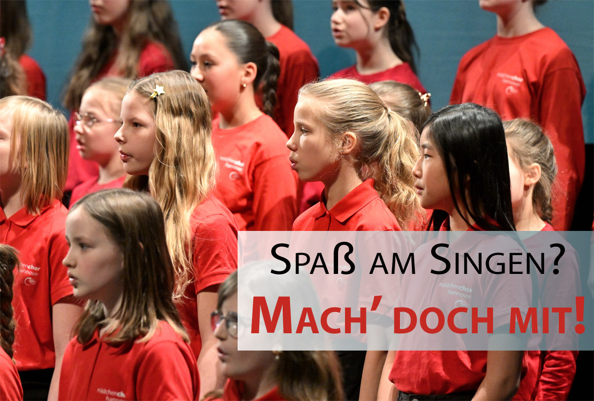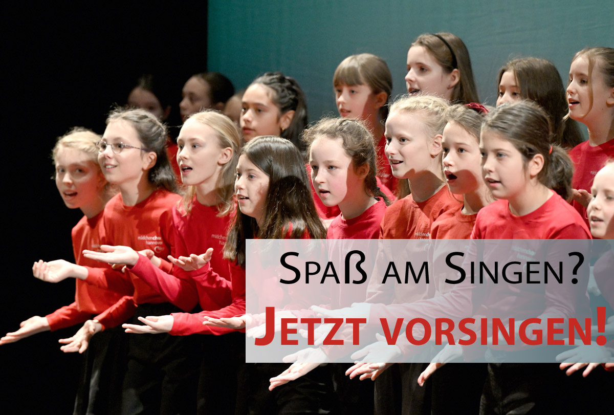 Interessierte Mädchen ab 7 Jahren haben die Möglichkeit, für die Aufnahme in einer der Chorgruppen des Mädchenchors vorzusingen. Jedes Mädchen ab 7 Jahren kann mitmachen! Du darfst ein Lied deiner Wahl vortragen. Die Mitarbeiter des Chores stehen bereit, um zuzuhören und einen Eindruck von deiner Stimme zu bekommen. Du brauchst nur mitzubringen: Freude am Singen und dein Lieblingslied.